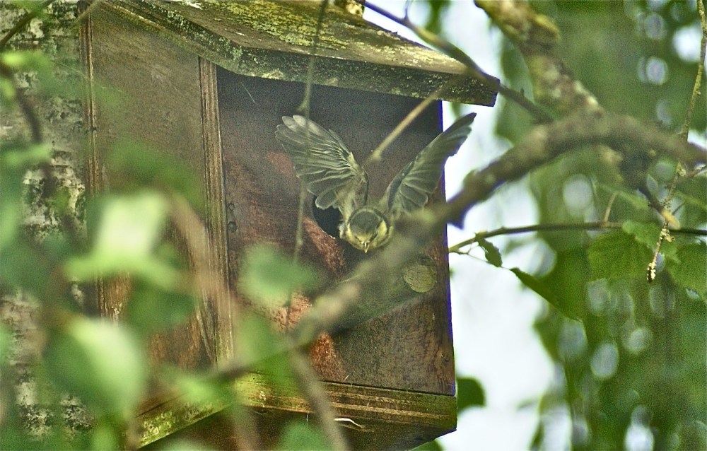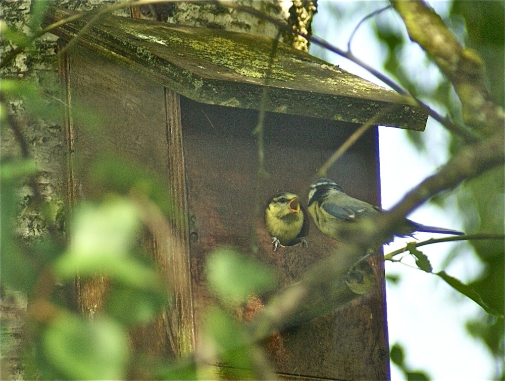 En face de notre fenêtre se préparait le grand départ de 10 bébés mésanges, ça n’en finissait pas, un par un la maman et le papa les ont fait sortir, jusqu’au petit dernier qui n’avait pas envie du tout 😉