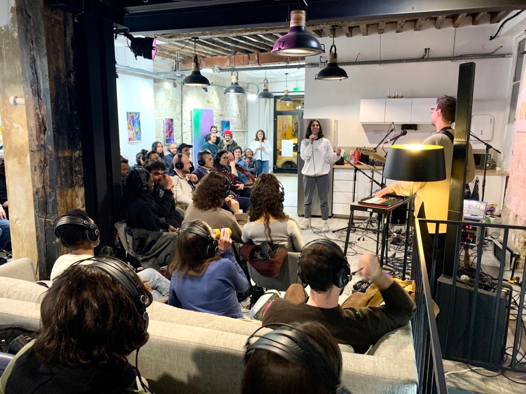 Le concept est assez original puisque lâĂ©coute du concert se fait avec un casque. Et oui, 50 casques stereo sont installĂ©s avec les cables et tout et tout đ !